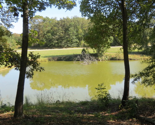 In front of the parking area is a lovely park setting. There are picnic tables, an old-fashioned swimming hole, and an open grassy field. Perfect place for a picnic, rest or swim. Mary Lou checked out the water, it was clear and cool.