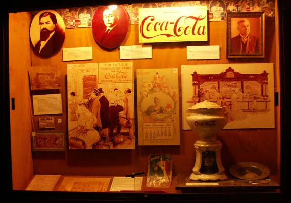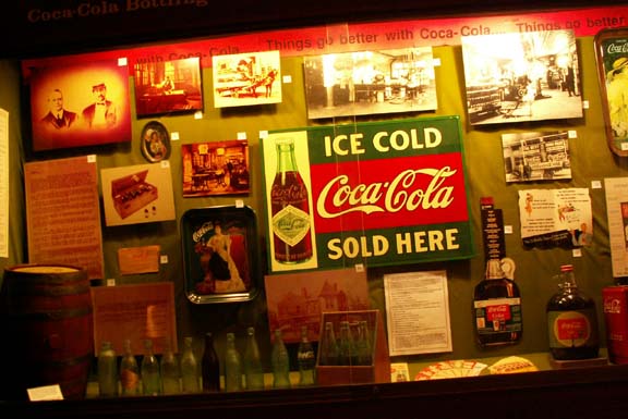 The first thing we saw after entering the porch was a marble fountain filled with bottled Coke. As Fred fired up the camera, the woman talking to us said, "Sir, no photographs". Like many museums, they had a no photograph policy. No matter how Fred teased the tour guide about how painful it would be to not make photographs, she just smiled. When she showed us the father's room of Coke memorabilia, she smiled at Fred and said, "this will be a hard room for you to see". She suggested we visit the Coca-Cola Museum in Vicksburg, Mississippi where photographs are permitted.