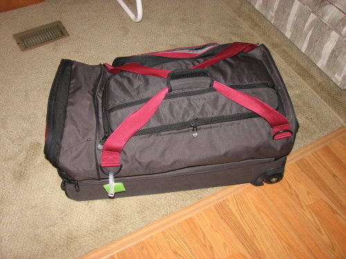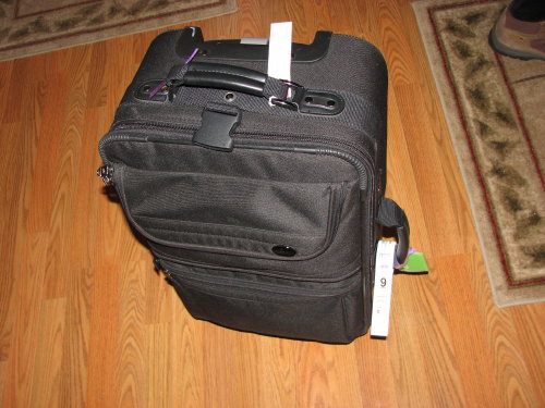 Fortunately, Melanie had two pieces of wheeled luggage we could borrow. Those