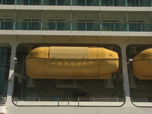 This is where you were to go to get on your life boat in the event of an emergency. A mandatory assembly drill at your assigned emergency location (ours, C08) was not fun - standing in the sun for 30 minutes. Fortunately, you are no longer required to wear your life jacket to the drill.