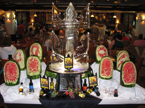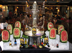 Carved watermelons . . . at the entrance to the Windjammer Cafe.