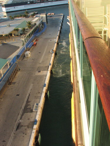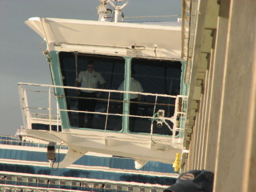 The Navigator of the Seas 'pushed' away from the dock, we were underway. The propulsion jets on the sides of large ships has almost eliminated the need for tug boats.