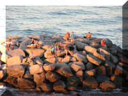 Heading for open water, we passed a wedding party on the beach and people on the rocks.