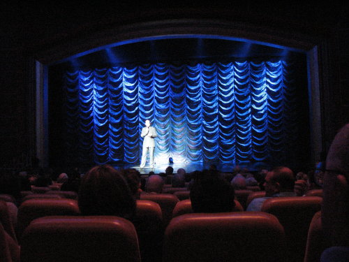 The main entertainment for 'Day 1' was a comedian named Dean Austin. He was preceded by comments from the Cruise Director Mike Hunnerup and the Navigator of the Seas dancers.