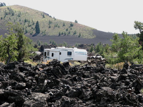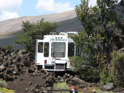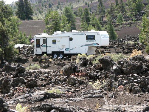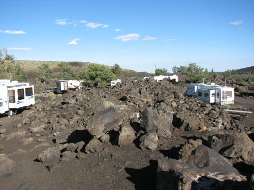 Note: There aren't many campgrounds that we like to arrive at in the dark - maybe none. The Craters of the Moon is one NOT to arrive at in the dark. When it get dark, it is really dark. And, all the lave racks are black.