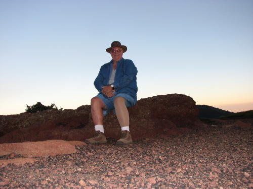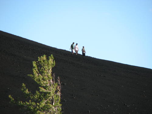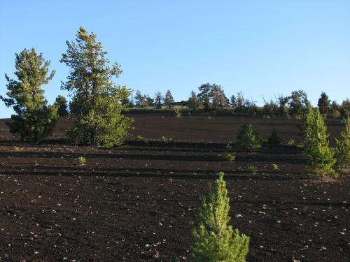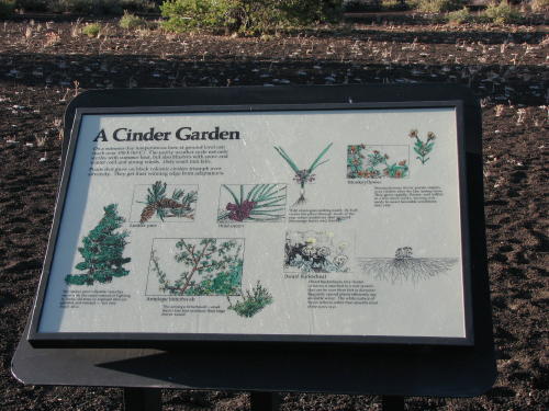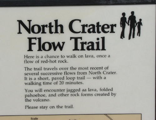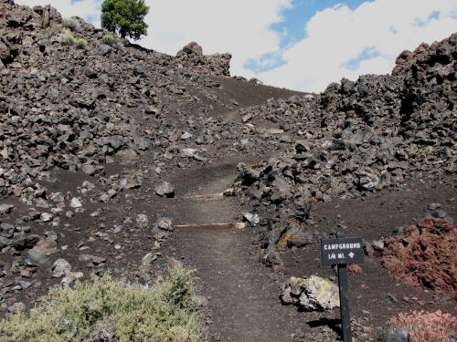 A sign in the parking area of The North Crater Flow Trail pointed to a 'Shortcut to Campground'. Fred walked the 'shortcut' to the top of the hill overlooking the campground. It was so windy at the top, he had to lean into the wind to make his photographs.