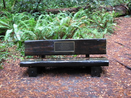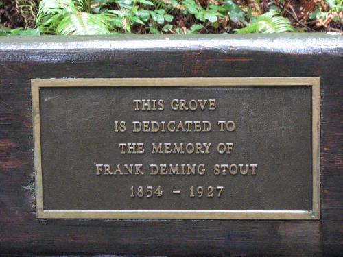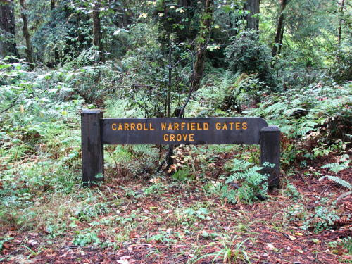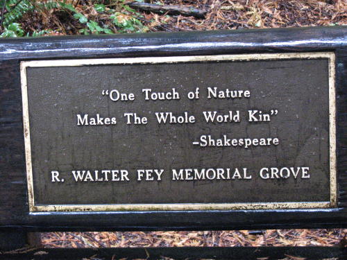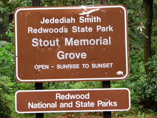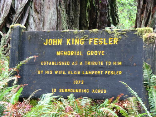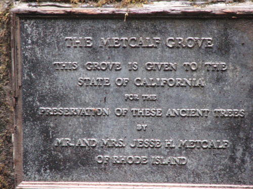 The term 'grove' is used to identify sections of the Redwood forest that were donated to the parks. Plaques or signs of various sizes and designs are used for the designation.
