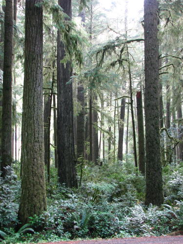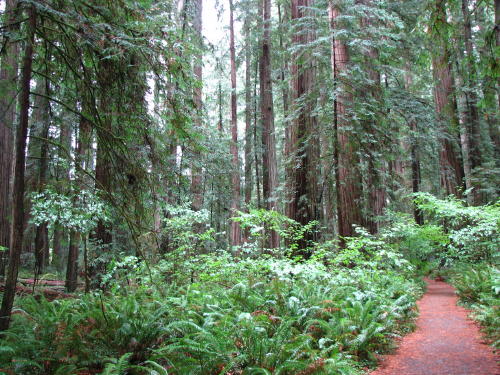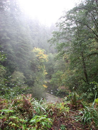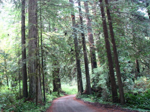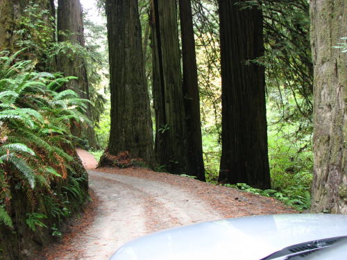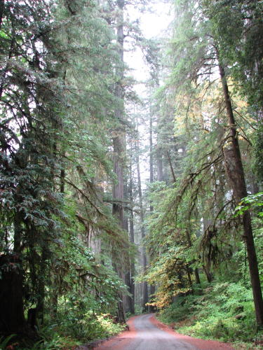The ranger at the Visitors Center in Crescent City strongly suggested we take the Howland Hill Road to Stout Grove. She said it was her favorite location for seeing Redwoods. It was a good way to spend a rainy day.