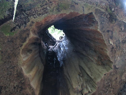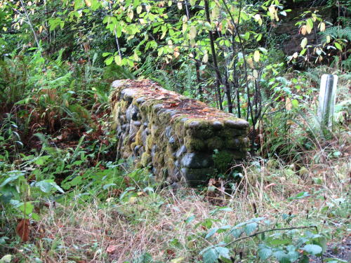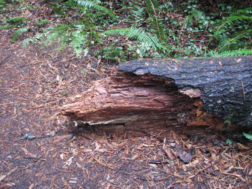 tree was cut to keep the road open. It is hallow and covered with vegetation.