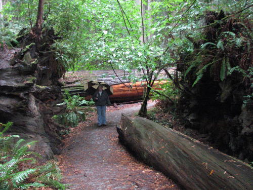 We feel fortunate that we could enjoy the Redwoods despite the off-and-on rainy day. We drove through more Redwoods farther south on the Redwood Highway (US-101) on the Newton B. Drury Scenic Parkway. The Parkway is posted to the On the road in Northern California - 2008 page.