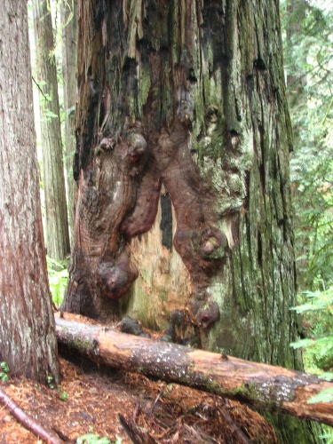 Some trunks were burned, had missing bark, hollow, bruised or have tangled bark.