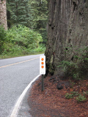 If a Redwood tree grows too close to the road, they had two solutions other than cutting it down. If it gets too close and leans over the road, cut a notch in it. Trees that grow straight, a reflector works.