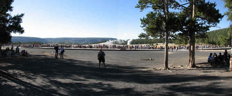 Both times, there were a few other people waiting as well. Old Faithful isn't totally dependable - it is +or - ten minute to the expected schedule. So, the waiting game is played.